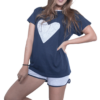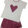 Este pijama feminino é a escolha perfeita para quem busca um estilo único. A camiseta de manga curta e gola com viés, apresenta um detalhe em patchwork no centro de um belo coração, trazendo um toque de originalidade e elegância.