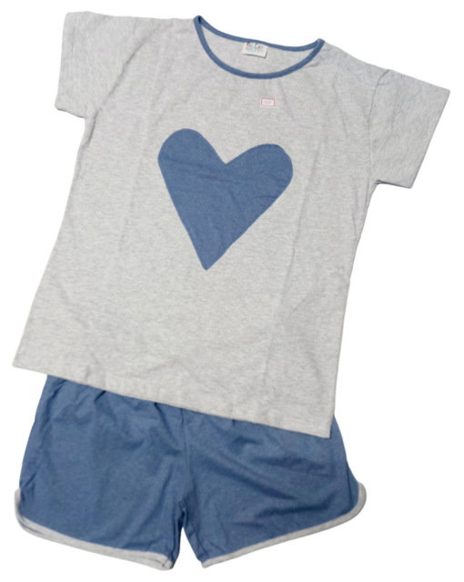 Pijama Feminino Manga curta Algodão com Estampa de Coração