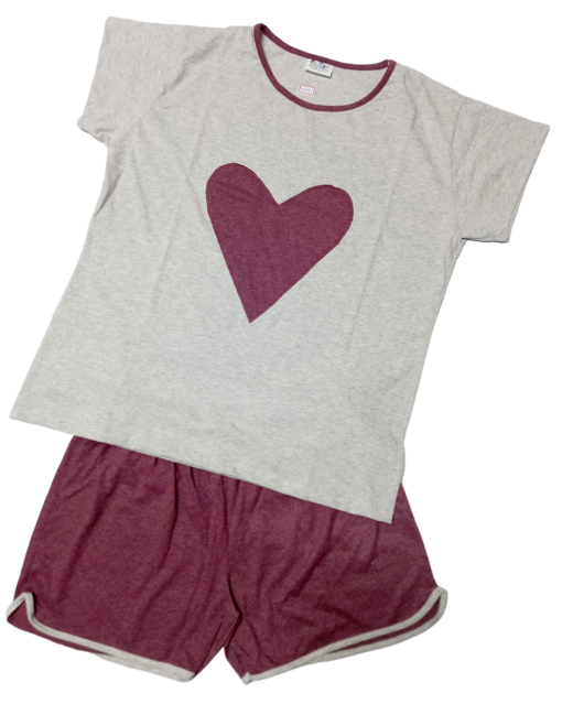 Durma com leveza e estilo. Pijama Feminino Manga Curta Em Algodão Com Com Estampa De Coração. Perfeito para completar seu visual.