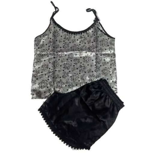 Baby Doll Feminino Alcinha Cetim com regulador de alça e blusinha estampada